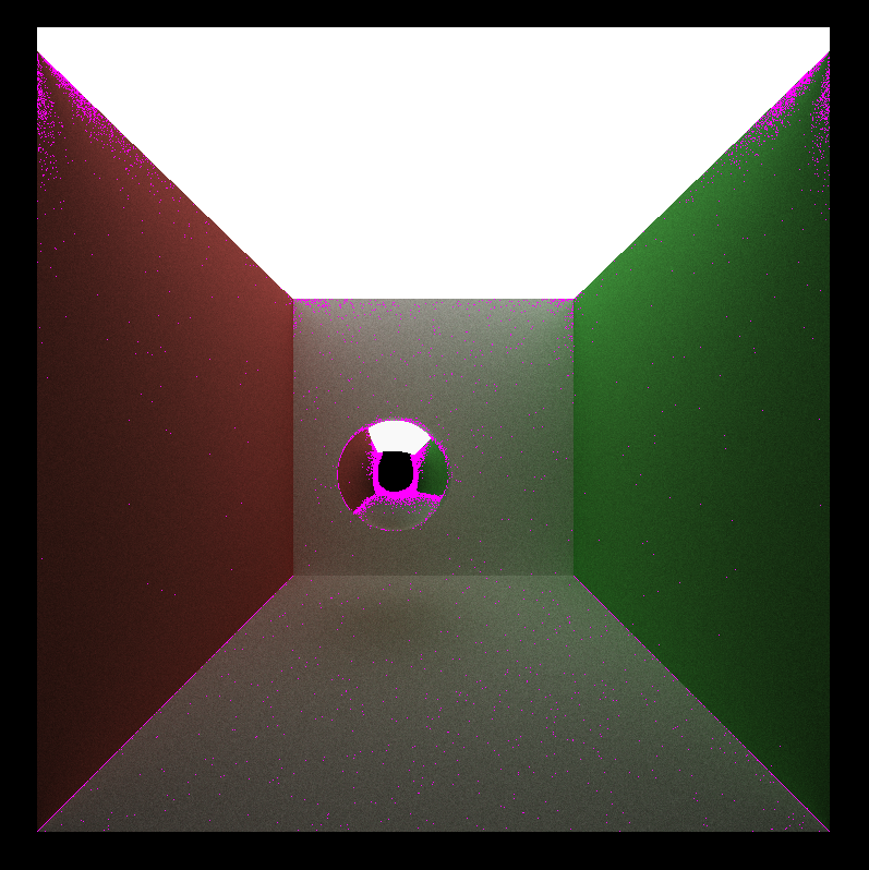 As observed, the denoise results on both diffusive and specular spheres, it is obvious that the diffusive sphere achieve much better denoise result than specular sphere. The specular sphere, when denoised, becomes blurred and the reflections are less realistic. This can be explained by the mechanism of the denoiser. Since the reflections on the sphere are not influenced by the normal nor positions, the edge-stopping function becomes less effective. As a result, colors of nearby colors will start to mix. From this phenomenon, we can also predict that the denoiser may not work well on surfaces with high-variance texture. Too few sampling cannot be compensated by a simple average denoiser.